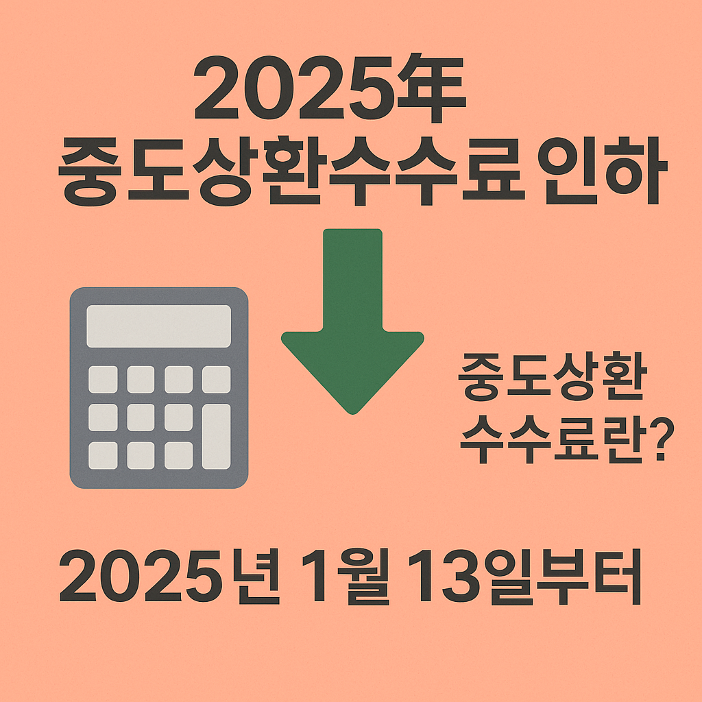 2025년 1월 13일부터 시행된 개편안에 따라, 중도상환수수료율이 대폭 인하되었습니다. 이는 신규 대출 계약에 적용되며, 기존 대출에는 적용되지 않습니다.